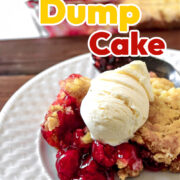 This recipe is for a 8 inch or 9 inch square pan. However, you can double it easily because one box of cake mix is for a 9x13 inch pan. So for this recipe, you only need ½ of the package of cake mix. I chose to make two square pans and make the Apple Dump Cake recipe as well so my family would have a cherry dump cake and an apple one as well.
