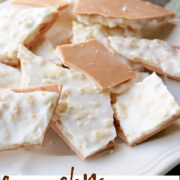 Another easy dessert to put on the Christmas Tray or to enjoy anytime! Layers of butterscotch, rice cereal and almond bark. This Crunchy Butterscotch Candy is simple and tasty, such a treat for sure!