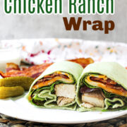 Slices of grilled chicken on a spinach wrap topped with fresh lettuce. Talk about a great fresh summer lunch or dinner. This Grilled Chicken Ranch Wrap is perfect for those hot summer days when you have leftover grilled chicken.